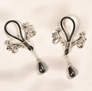 / AS41 Non-piercing nipple rings in silver with hematite pendant
