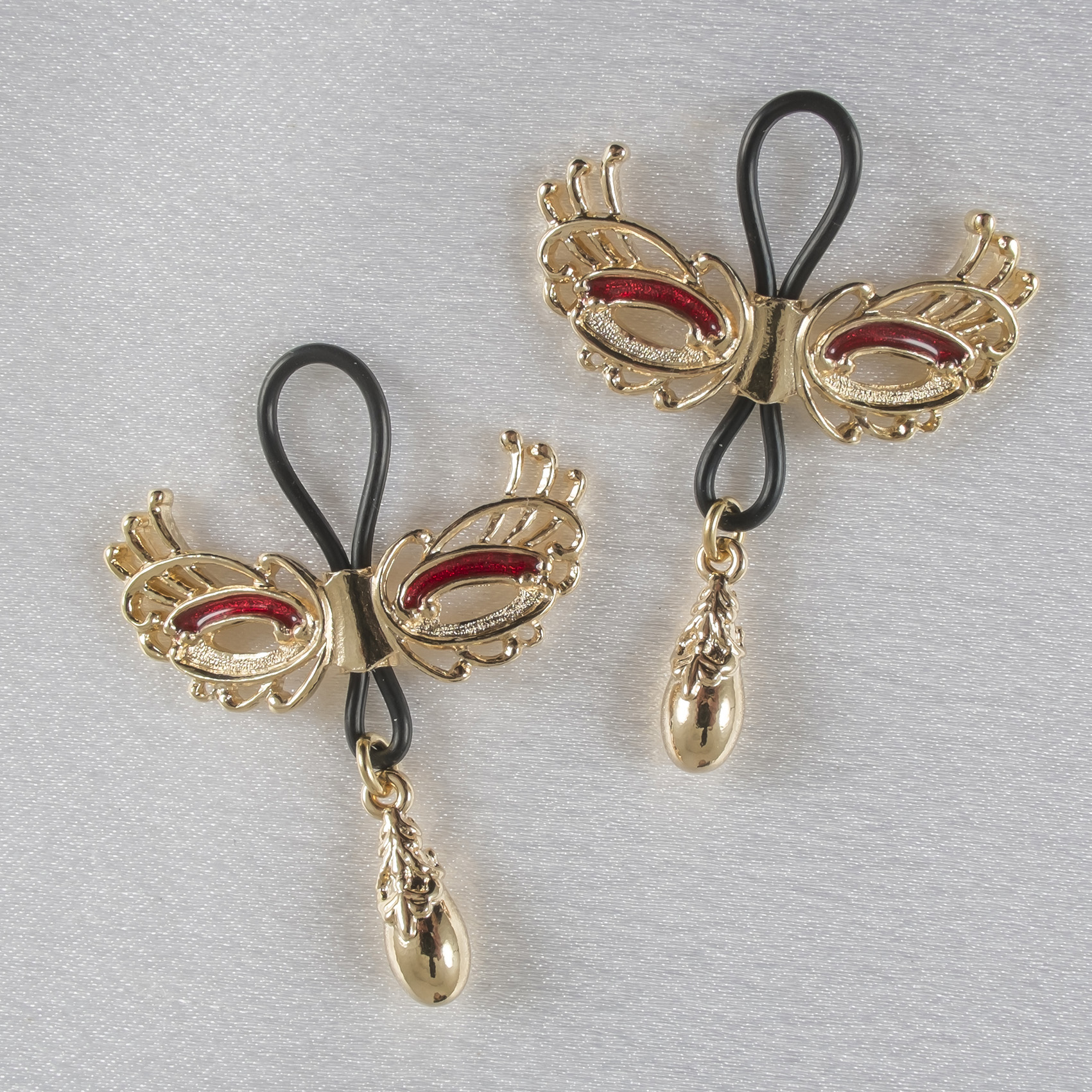 / AS96 Women’s Non-Piercing Love Masks of Venice Nipple Rings in Gold