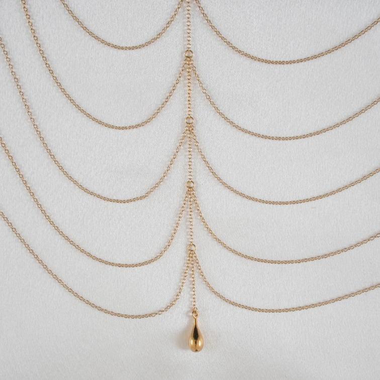 / BUS40 Women’s Draping Gold Chains Breast Chain with Pendant