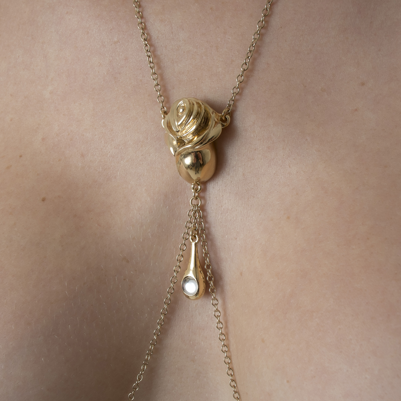 / COS110 Womens Gold Rose Pendant Breast Chain