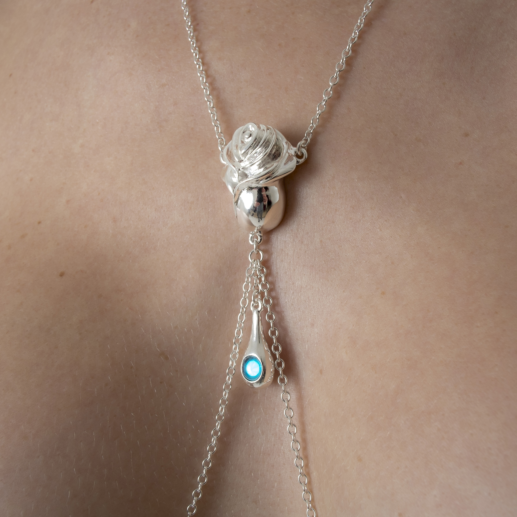 / COS111 Womens Silver Rose Pendant Breast Chain