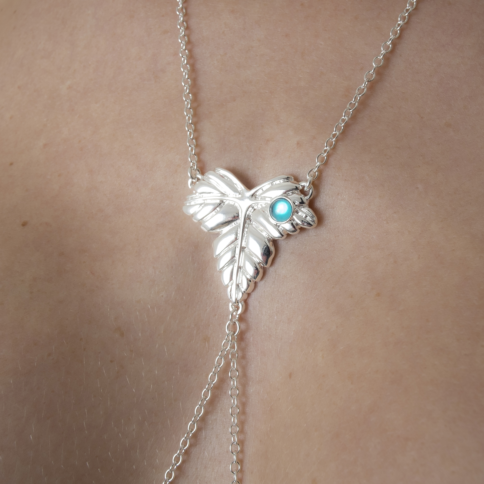 / COS113 Womens Silver Leaf Pendant Breast Chain