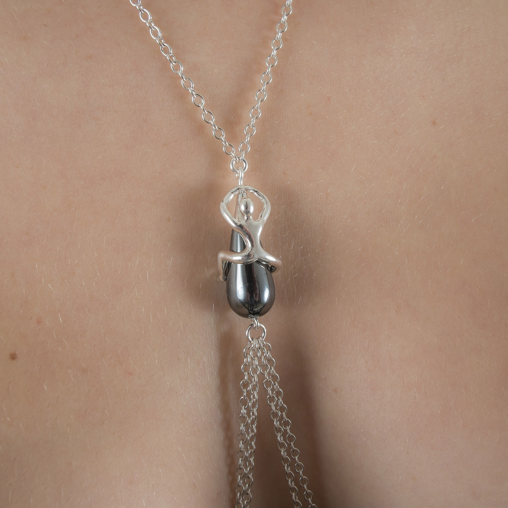 / COS85 Women’s Secret Passion Breast Chain Non-Piercing Hematite in Silver
