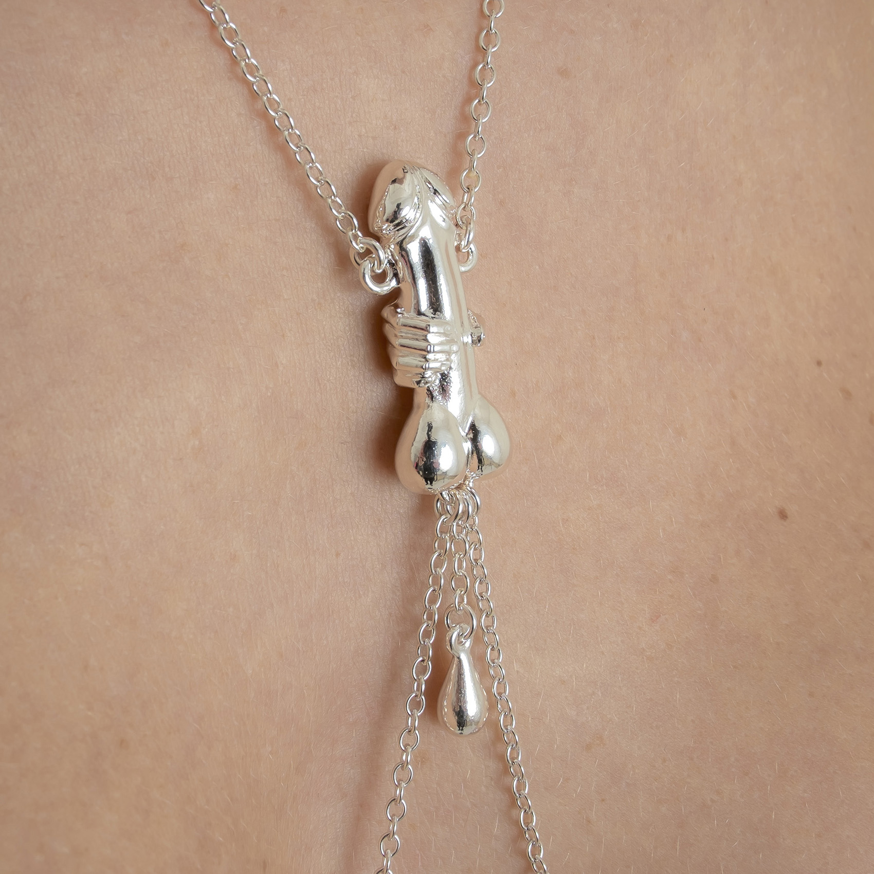 / COS99 Womens Silver Penis Pendant Breast Chain