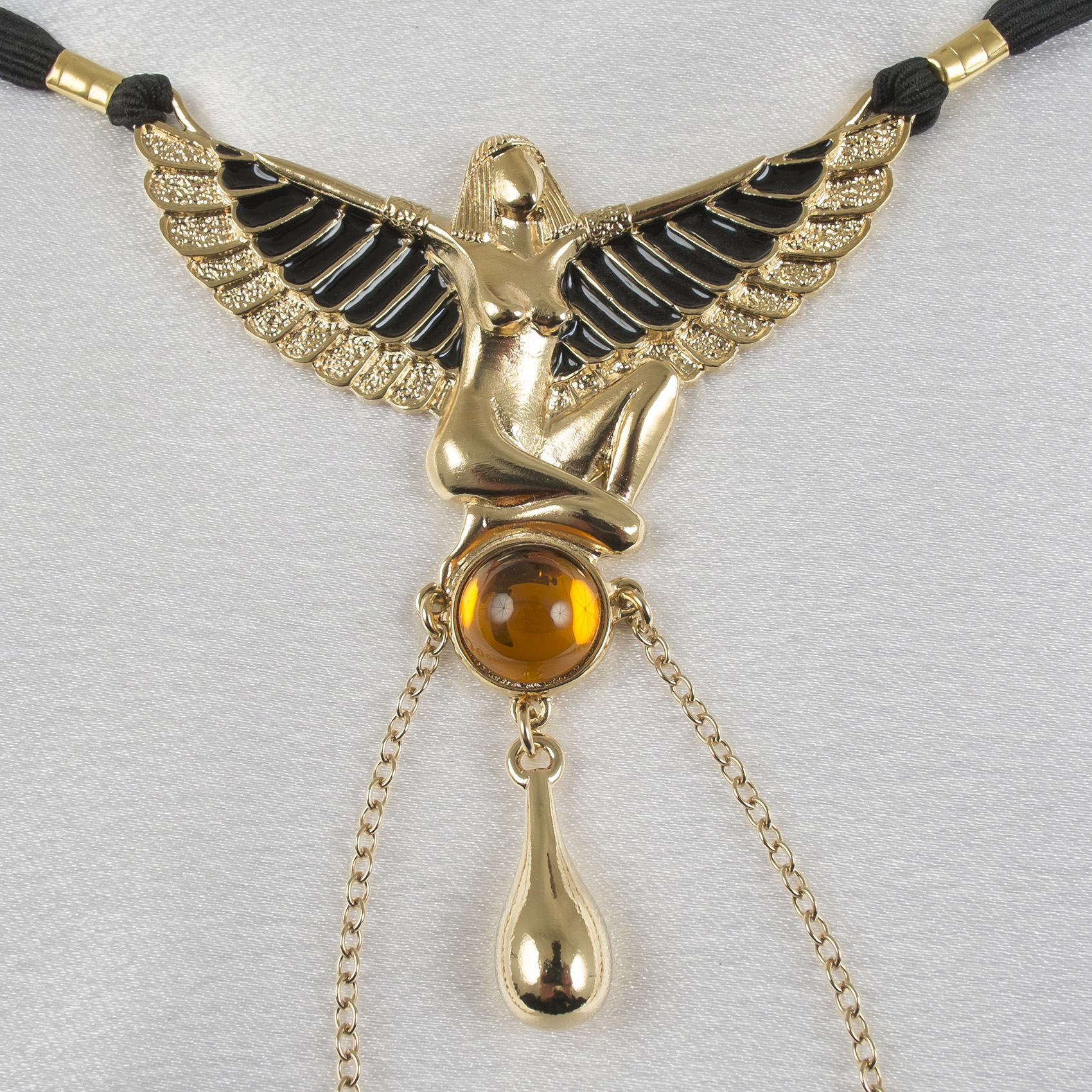 / ST184 Women’s Breath of Isis G-String with Blue Gem in Gold